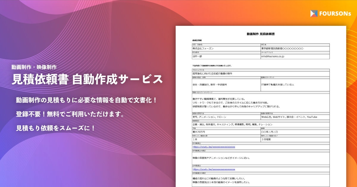 『動画制作見積依頼書・自動作成サービス』(https://foursons.co.jp/estimate)の提供を開始いたします。