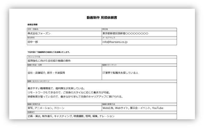 相見積もりの際も、見積依頼書を動画制作会社に送るだけで依頼できます。