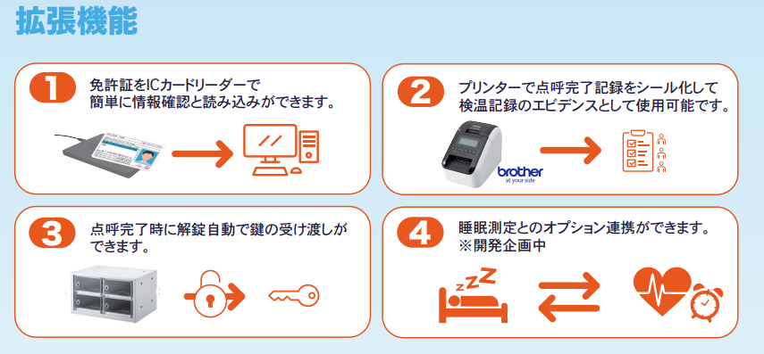 ・プリンターの連携により、点呼完了記録をシール化し検温記録のエビデンスとして使用可能