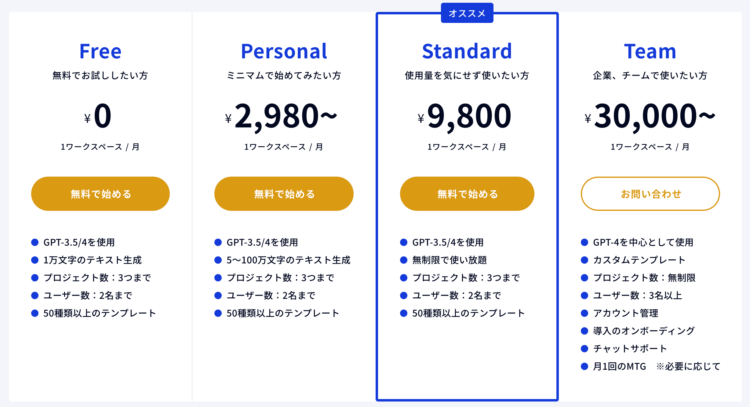 新プランの特徴として注目すべきは、GPT-3.5/4を用いた50種類以上のテンプレートが「無制限」で利用可能となった点です。これにより、ユーザーは自分自身のアイデアをより自由に、より具体的に表現することが可能になります。