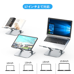 このノートPCスタンドは、人間工学に基づいた設計原理を採用しており、高さや傾斜を素早く調整することができ、カスタマイズされた視聴体験を提供します。目の疲れや首、肩、背中の負担を軽減しながら快適さを向上させます。頑丈な金属製のパソコンスタンドは、11インチから17インチまでのノートパソコン、タブレット、Kindleなどのデバイスに最適です。この超薄型のPCスタンドは、使用しない時には1.3インチまでフラットに折りたたむことができ、ノートパソコンバッグやバックパックに簡単に収納できます。自宅、オフィス、寮、旅行など、あらゆる場所で活躍します。