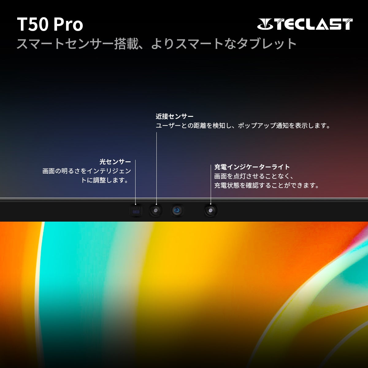Teclast「T50 Pro」でインテリジェントなインタラクションを体験してください。標準的な重力センサーに加え、高度なモーションセンサー、周囲の明るさセンサー、近接センサーを備えています。このスマートセンサーらがデバイスの適応性を高め、より洗練された直感的なタブレット体験をお届けします。