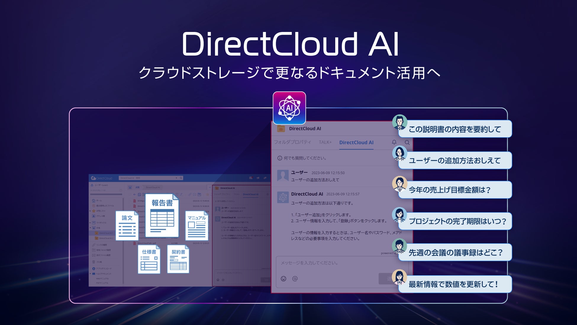 私たちダイレクトクラウドは、クラウドストレージ「DirectCloud」上に保存されているドキュメントをより活用していただくために、DirectCloud AIの開発を開始しています。
