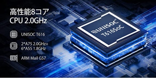 MaxPad I11PlusタブレットはUNISOC T616の強力な8コア高速処理チップを搭載し、A75アーキテクチャコアを使用、最大周波数は2.0 Ghz対応、AnTuTu実行ポイントは255,000を超えます。