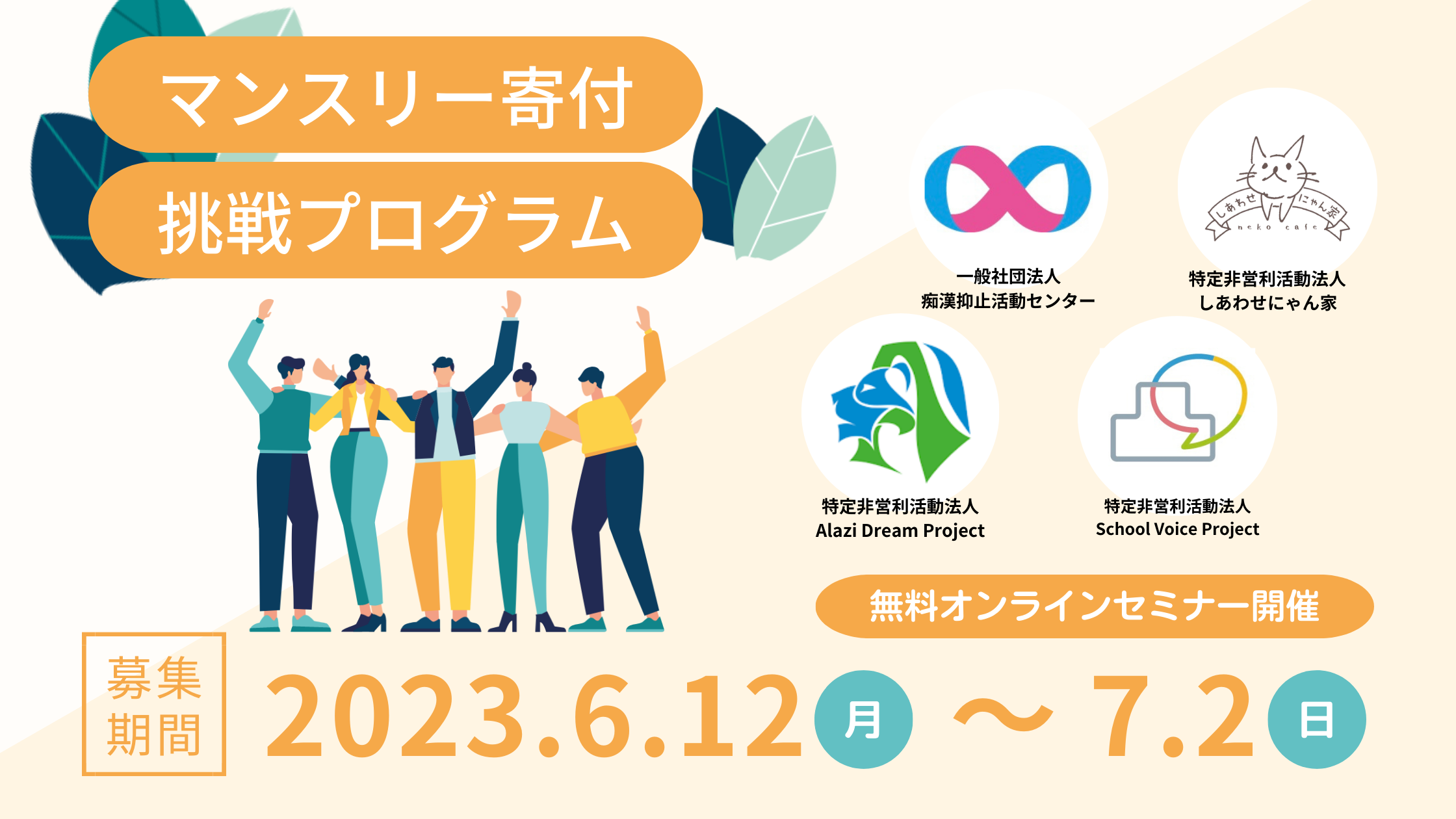 助成先団体の公募は2023年6月12日(月)〜 7月2日(日)の期間で受け付けています。