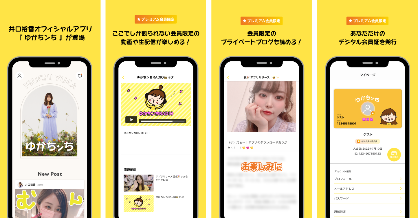 井口裕香オフィシャルアプリ「ゆかちンち」の会員になると、会員限定サービスをお楽しみいただけます。