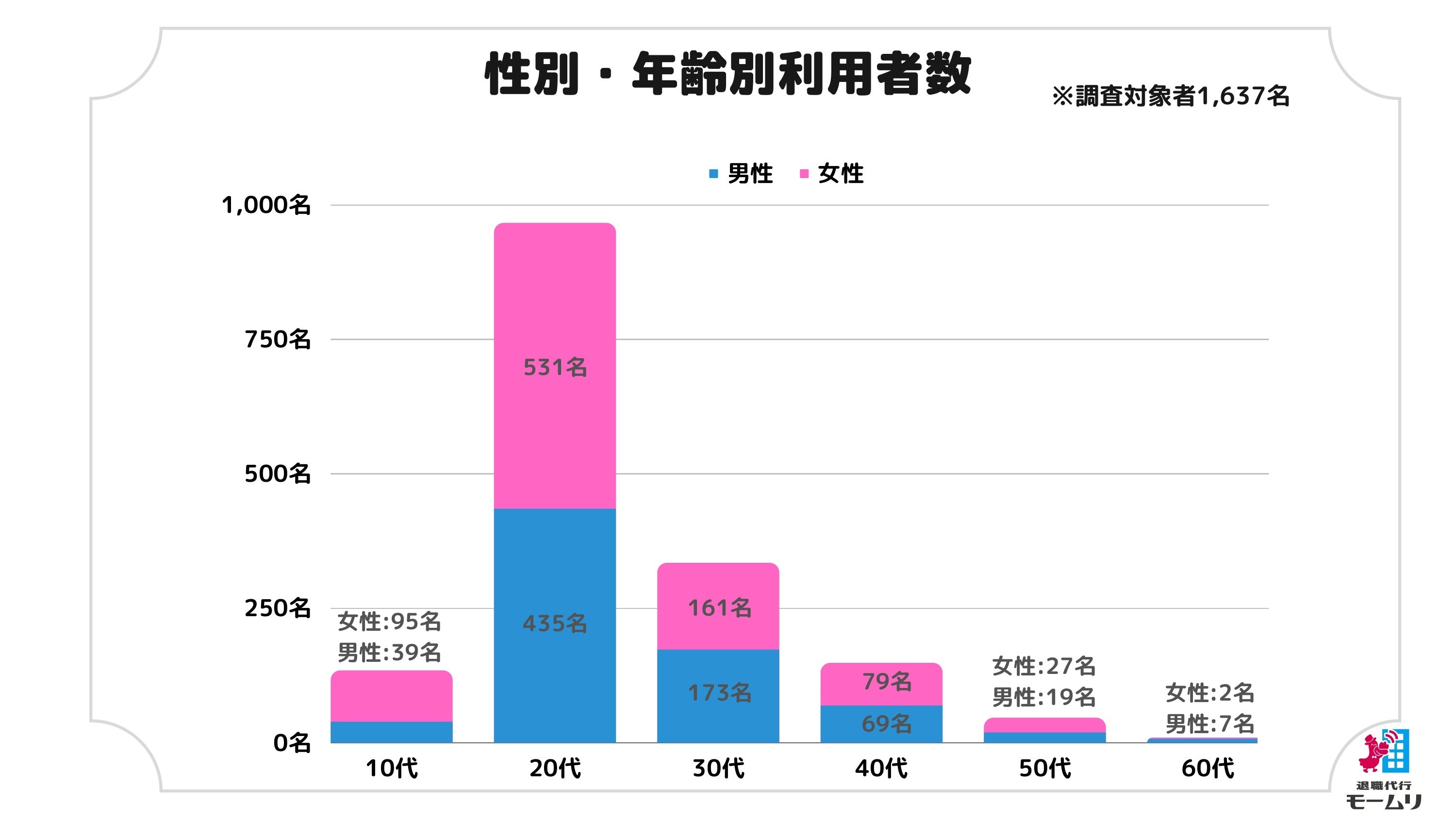 退職代行利用者の性別及び年代別利用状況を集計しました。