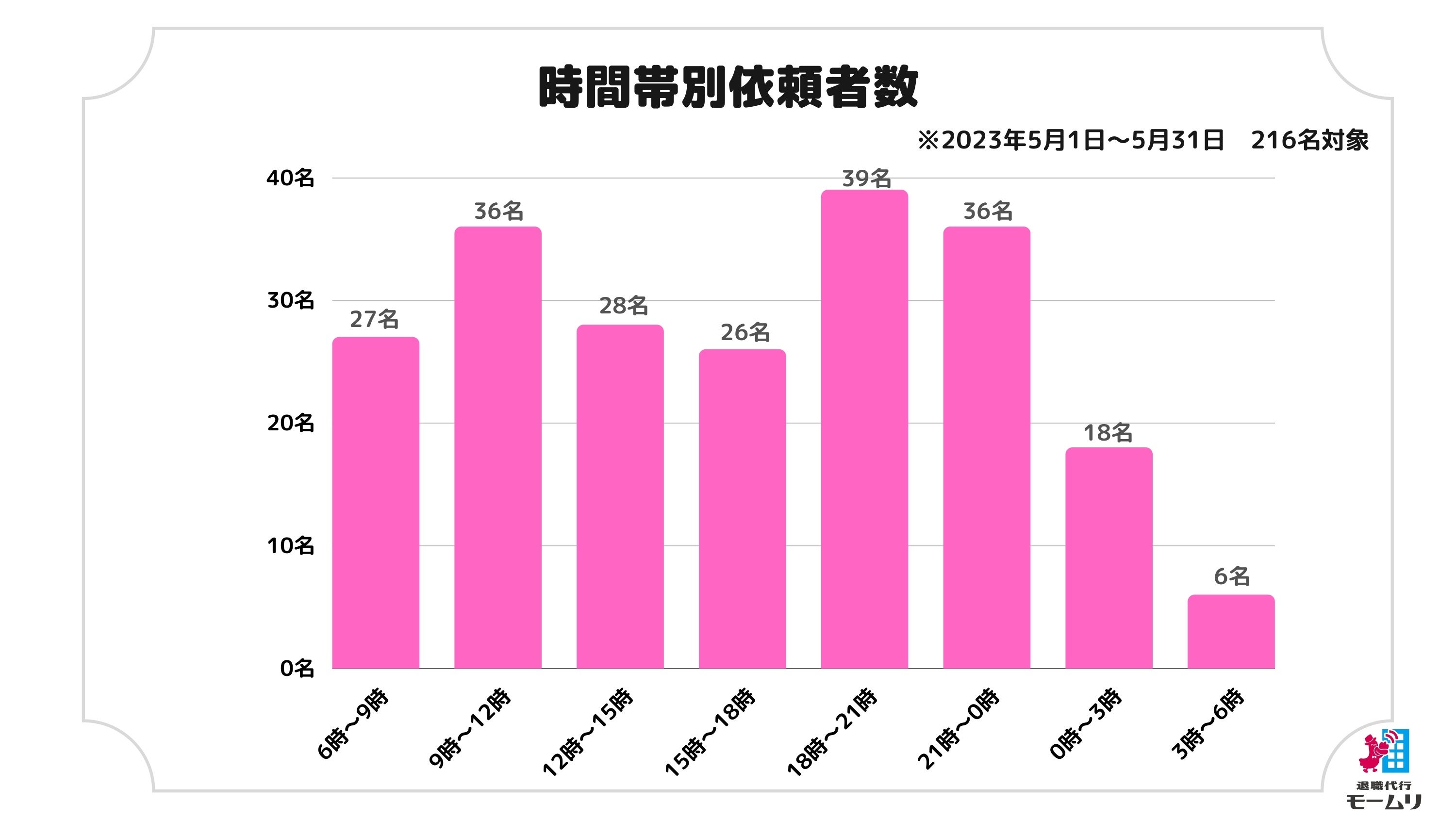 退職代行の相談があった時間帯を時間帯別に集計しました。
