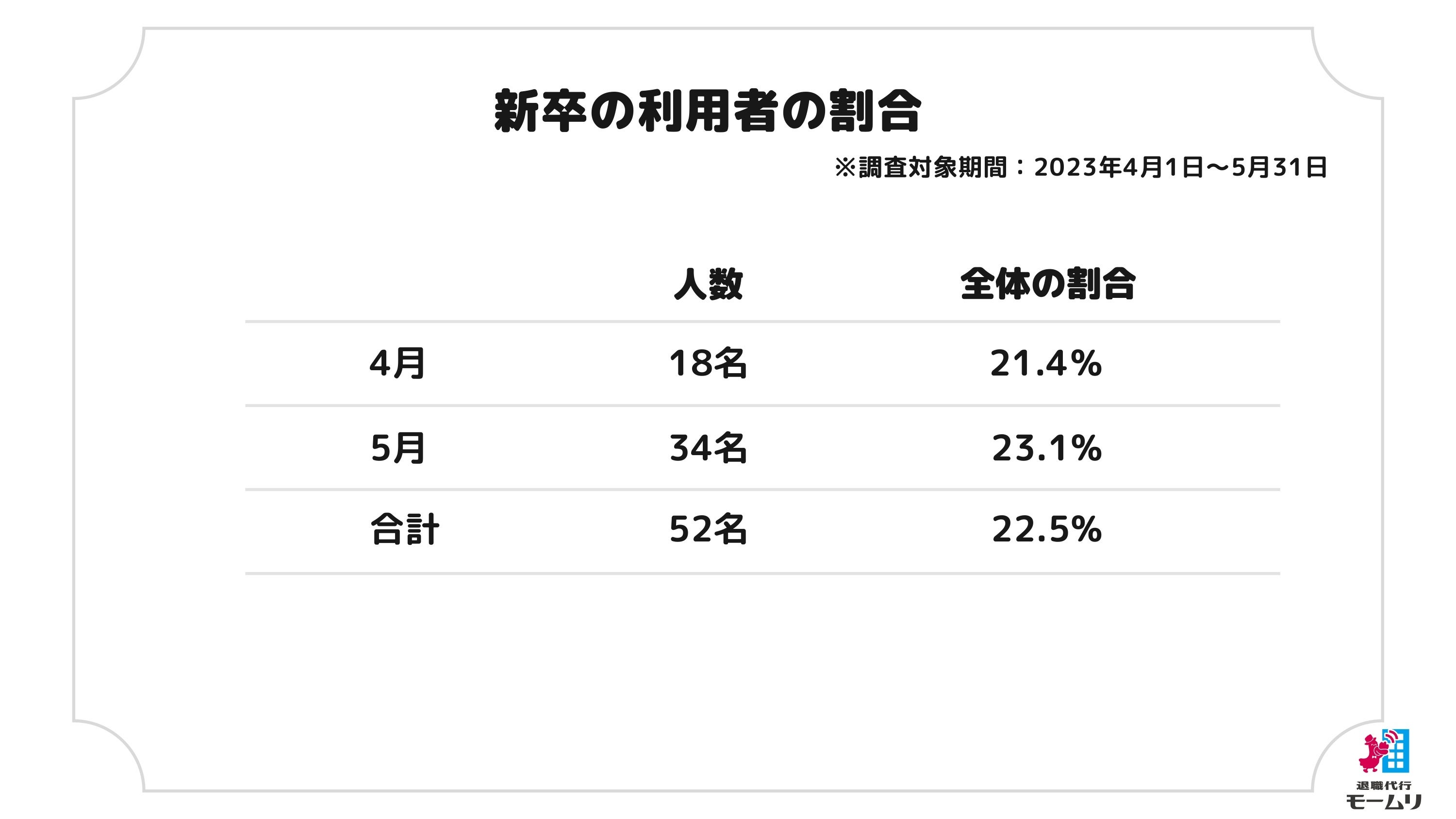 ※2023年4月1日~5月31日の期間内の新卒調査対象者52名