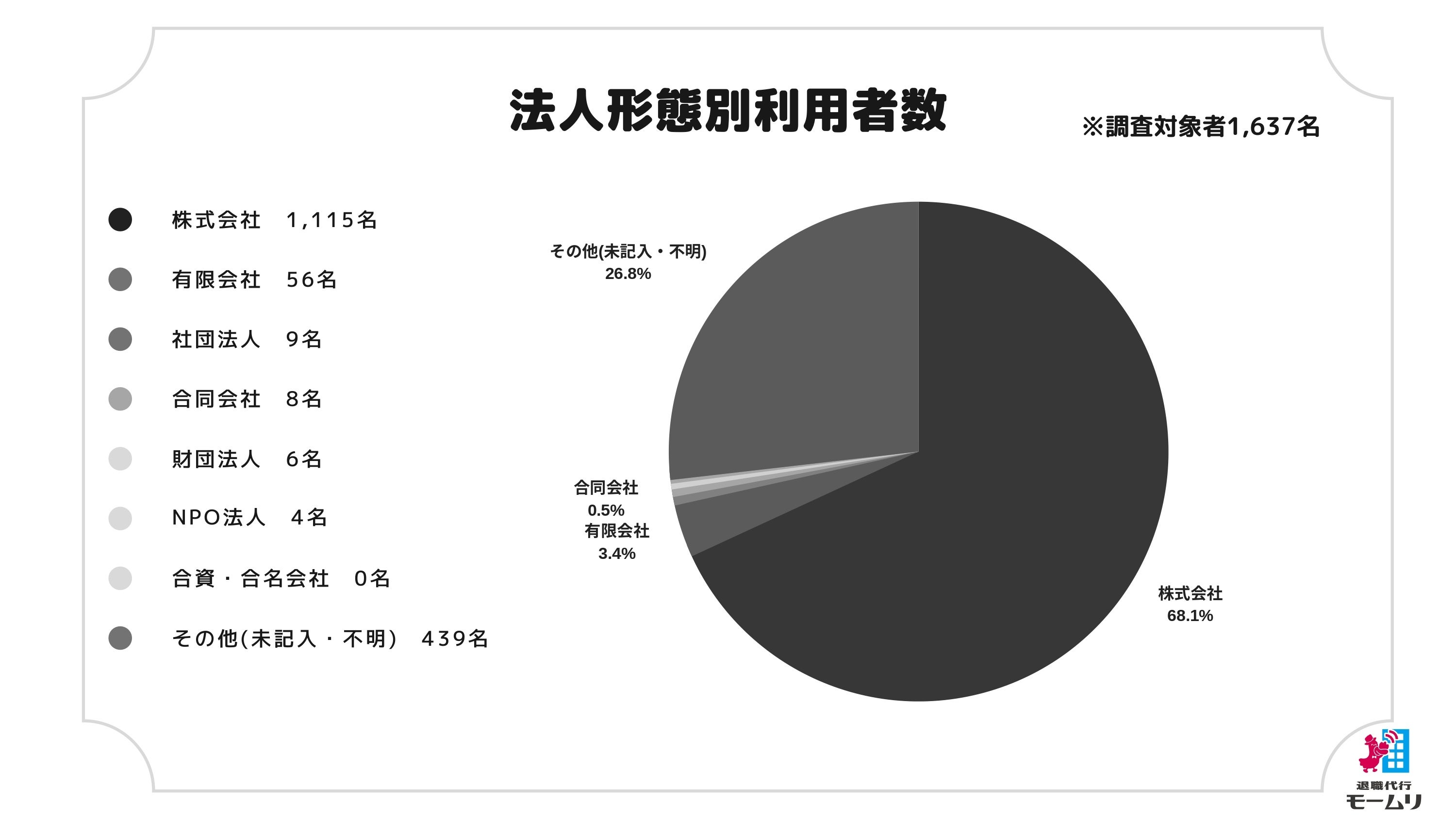退職代行利用者が雇用契約を交わしていた会社の法人形態を集計しました。