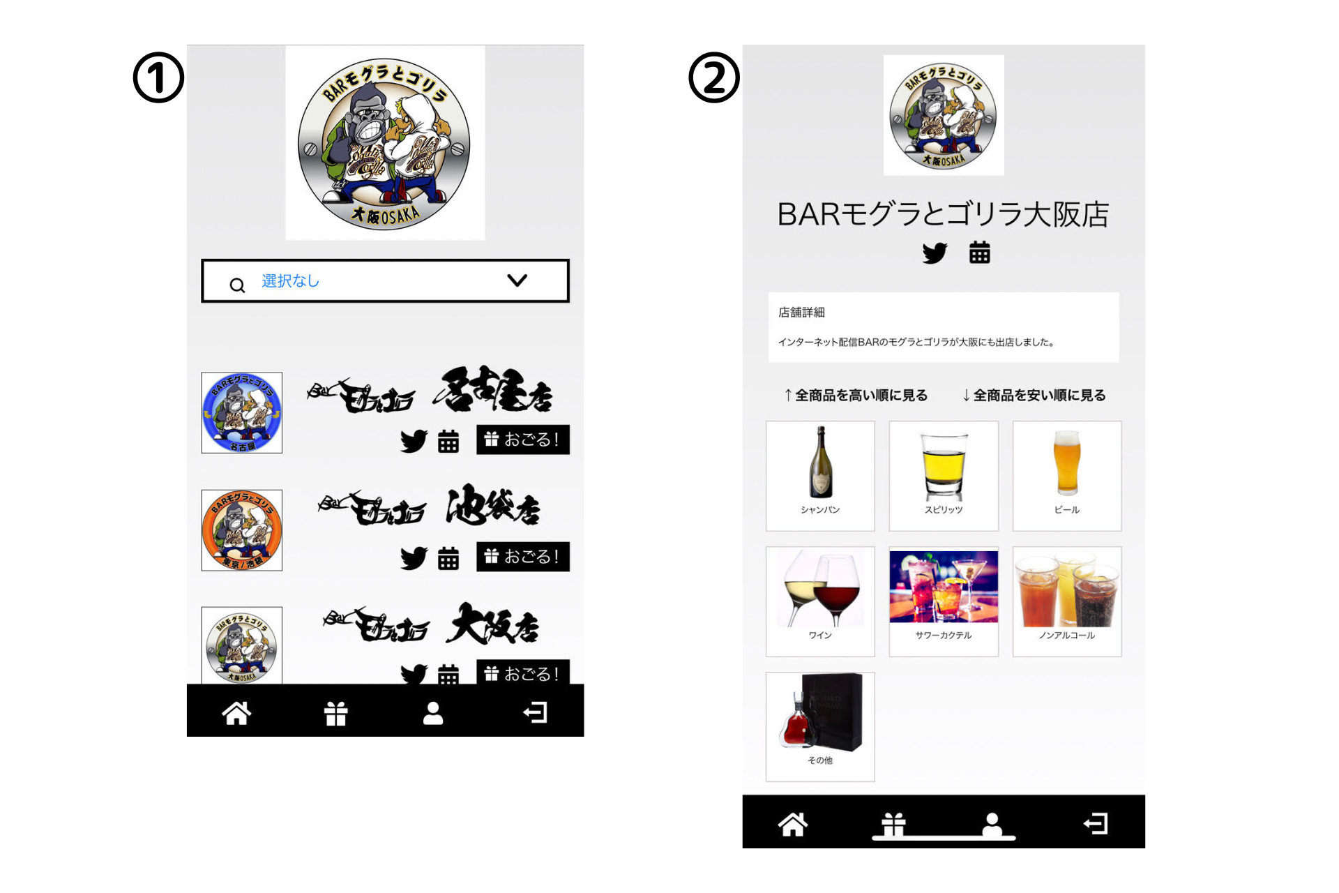 『インターネット配信BAR モグラとゴリラ』WEBアプリ