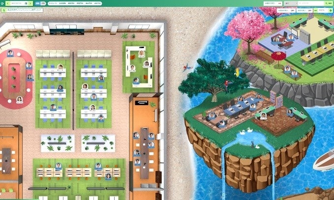 ハイブリッドワーク前提のバーチャルオフィス空間により、シームレスなコミュニケーションが可能