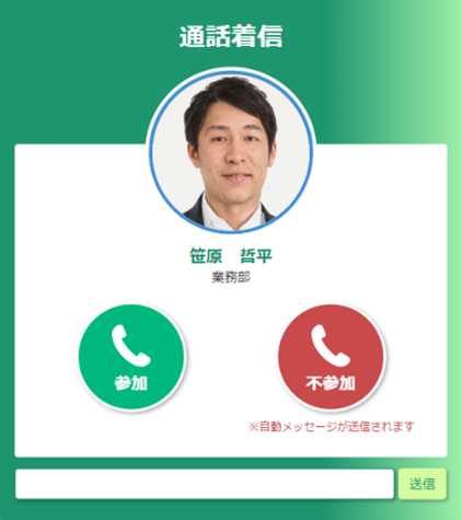 在席・離席の状況が視覚的に分かるため、コミュニケーションのタイミングを逃しません。