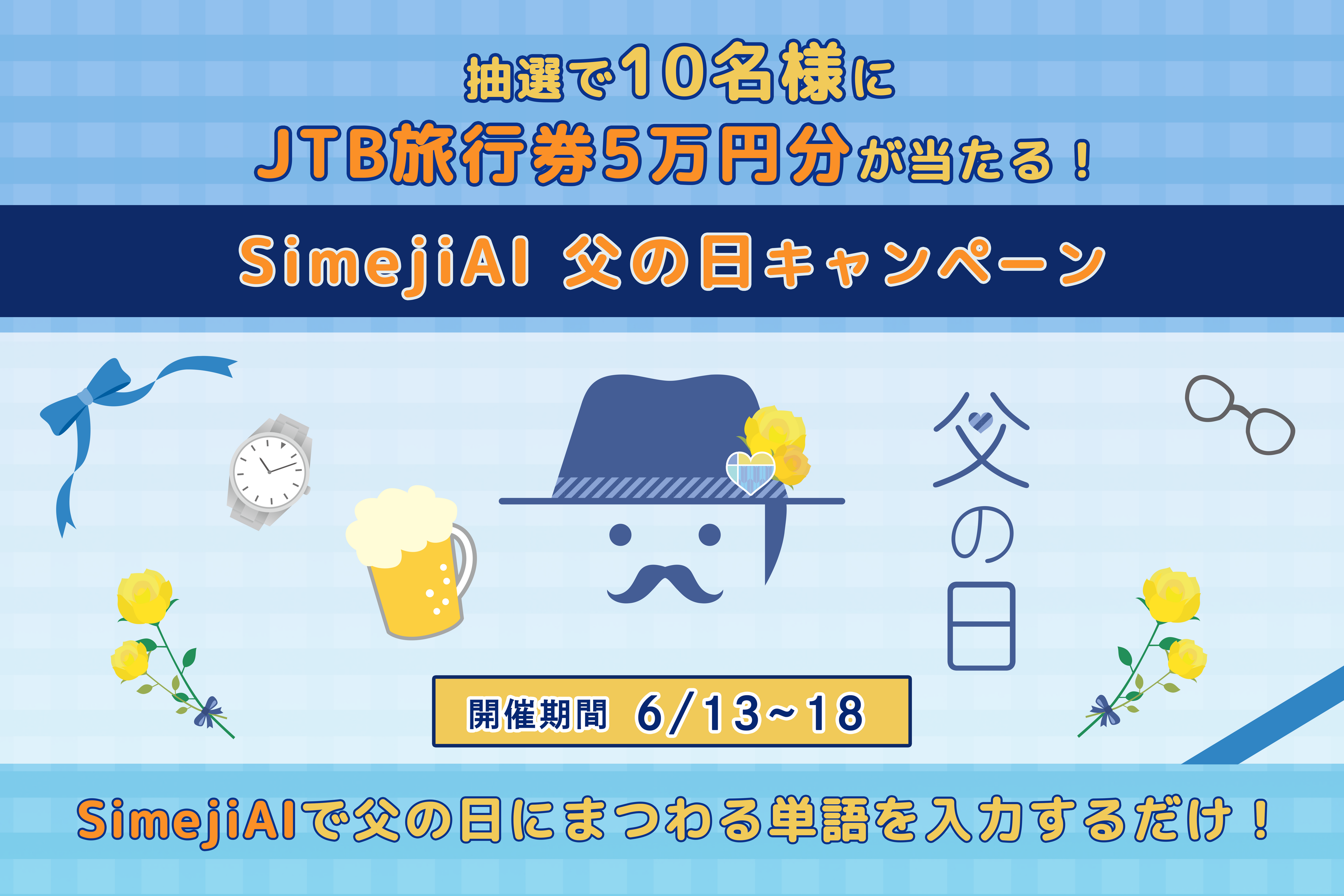 SimejiAIで父の日に関するキーワードを入力して、5万円分のJTB旅行券を当てよう!