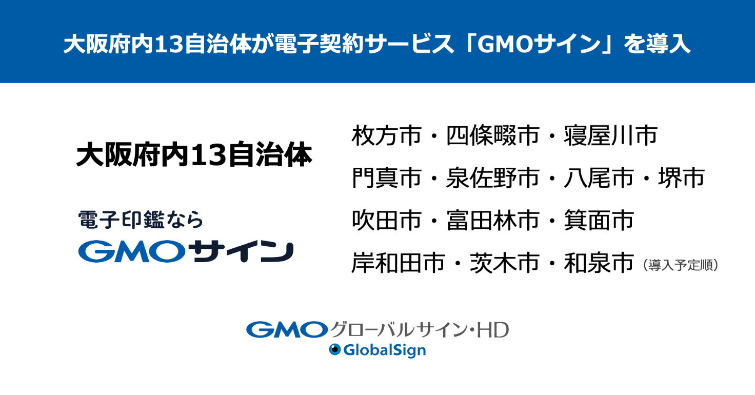 大阪府の自治体では、豊中市(2022年4月~)、東大阪市(2022年7月~)がすでにGMOサインを利用しており、合計で府内15自治体がGMOサインを活用することになります。なお、枚方市は2022年10月より他の電子契約を活用していましたが、本年6月よりGMOサインに切り替わります。