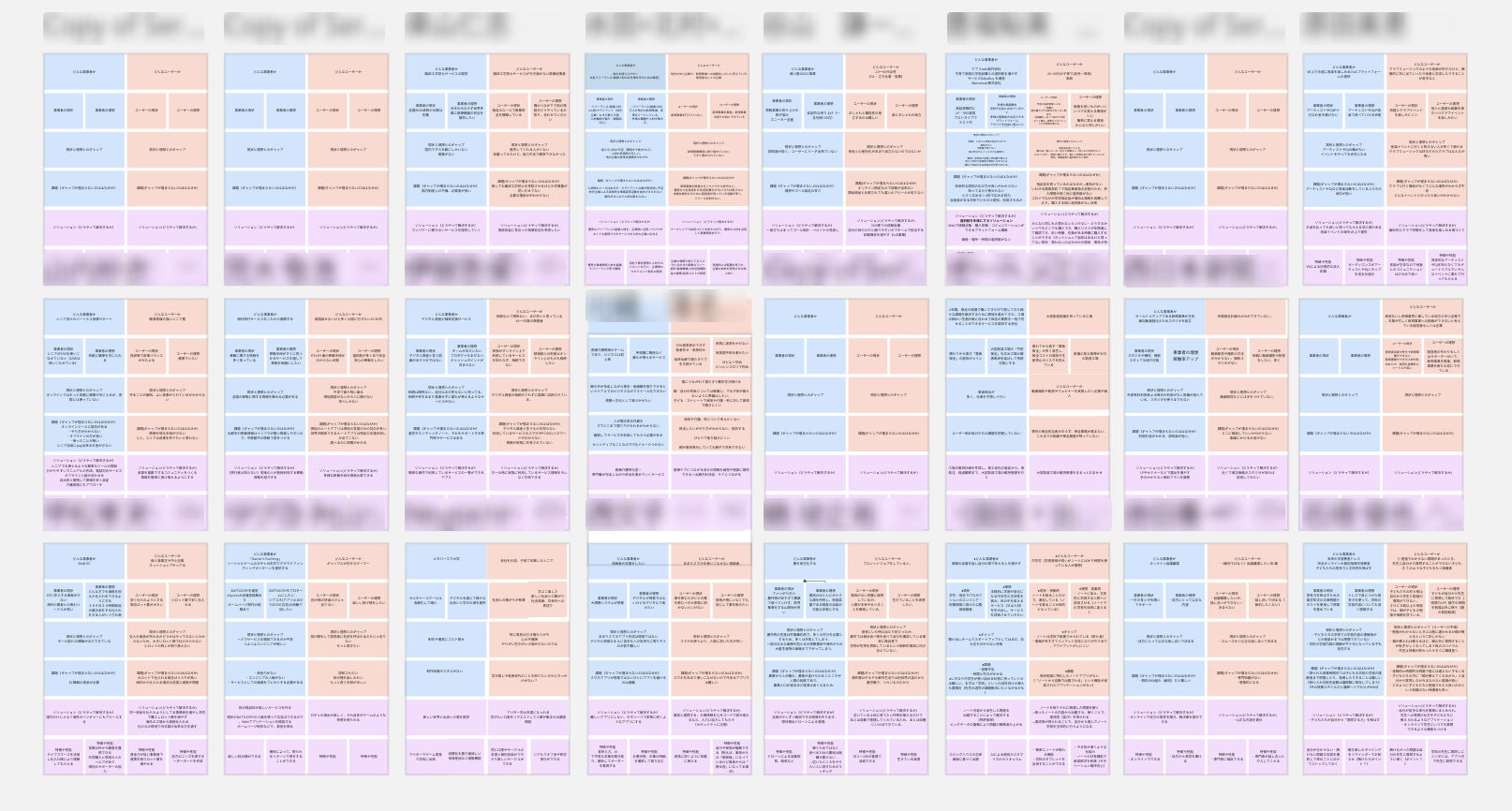 ユーザーの課題を抽出し、バリュープロポジションを設計。それらを用いてプレゼンに使用するコンセプトデックや価値検証を行うLPを作成しました。実際にコンセプトデックを使ってサービス紹介を行い、参加者同士でフィードバックや意見を伝えながら精度をあげていきました。