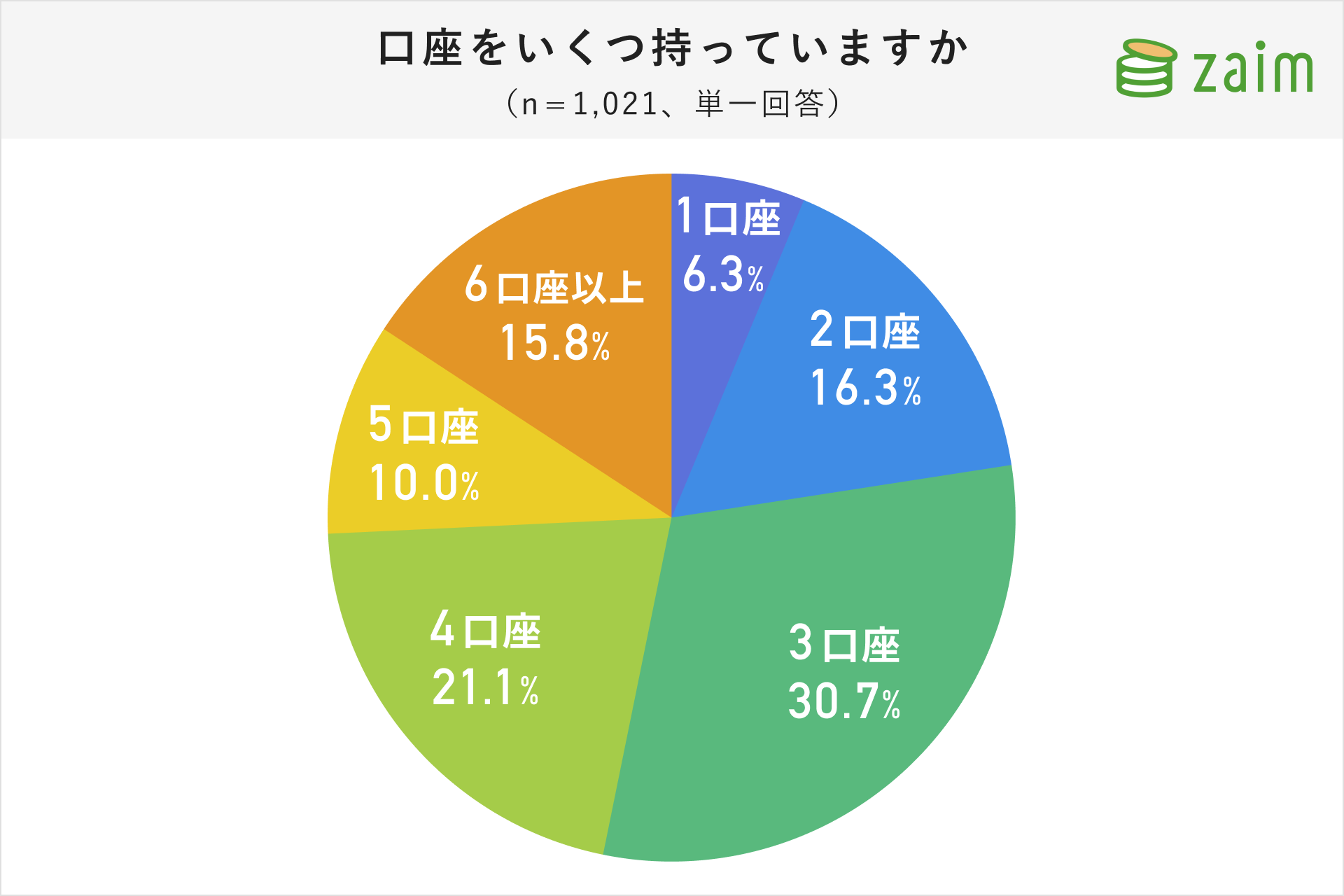 「Zaim」ユーザーを対象に実施した「口座の家計管理方法」に関するアンケート調査によると、約8割が3口座以上を保有していることがわかりました。また、回答者全体の4分の1以上が5口座以上を保有している結果となりました。