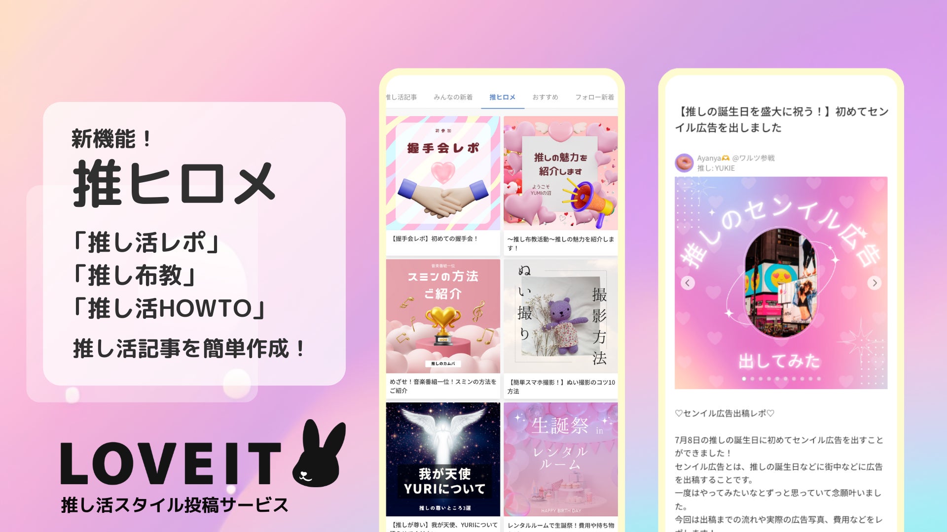 【推し活レポや推しの布教に!】推し活サービス「LOVEIT」がコンテンツ投稿機能『推ヒロメ(オヒロメ)』を6月末にリリース