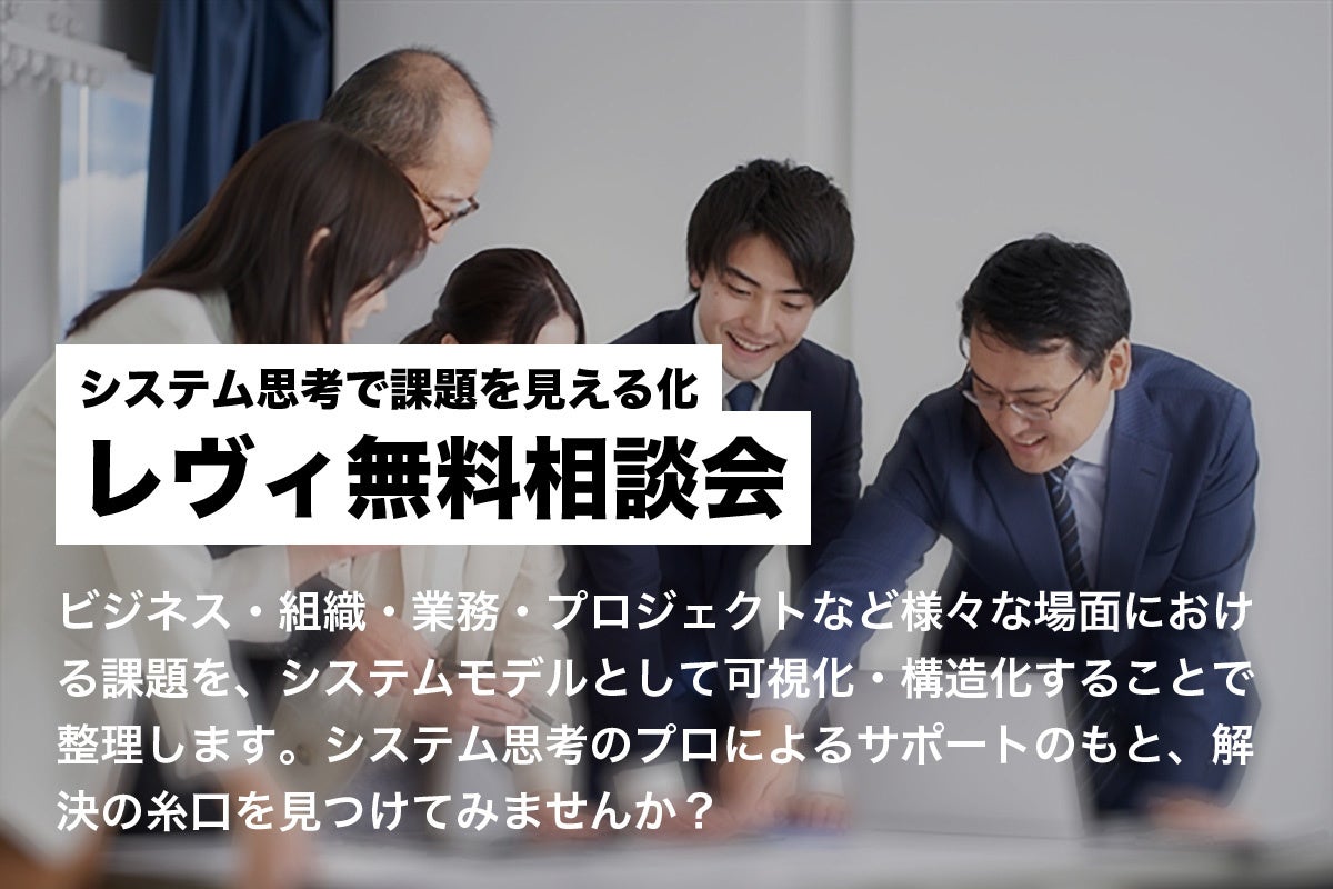 このたびレヴィは、そのようなサービス展開の中で蓄積してきたノウハウと進化させてきたツールによる問題解決の力を、より多くの人や組織に届けたいという想いから、「システム思考で課題を見える化 レヴィ無料相談会」の提供を開始しました。