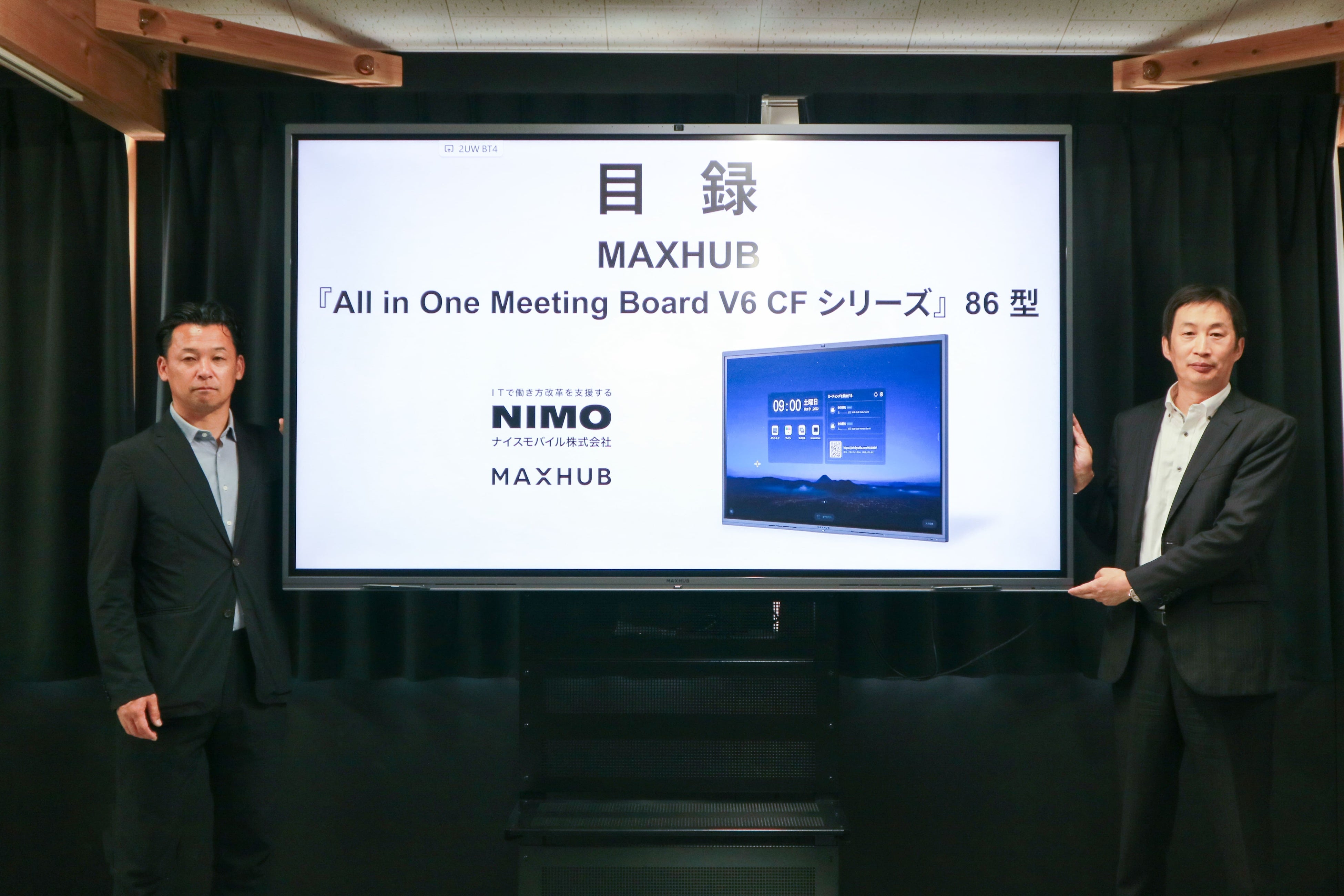 MAXHUBブランドのインタラクティブホワイトボード(電子黒板) です。MAXHUBでは何万回もの会議を分析し、「会議の軽量化」をキーワードに、時間のかかる議事録作成や煩雑になりがちな配線、接続設定の複雑さなどについて簡素化できる製品を開発しています。従来の会議が抱える問題点を解決するために設計された「All in One Meeting Board」は、既存業務の置き換えだけではない、新しい価値を生み出すDXを実現いたします。直感的でシンプルな操作性でありながら、同時にあらゆる機能を持つことで、WEB会議や研修だけでなく、時には災害対策や演奏会に至るまで、業種やシーンを問わず幅広くご活用いただけます。MAXHUBは、ビジネス向けインタラクティブディスプレイブランドとして世界シェアNo.1(*)を誇り、 「All in One Meeting Board」の国内販売台数は1万台を突破しました。(*Futuresource調べ / 2022)