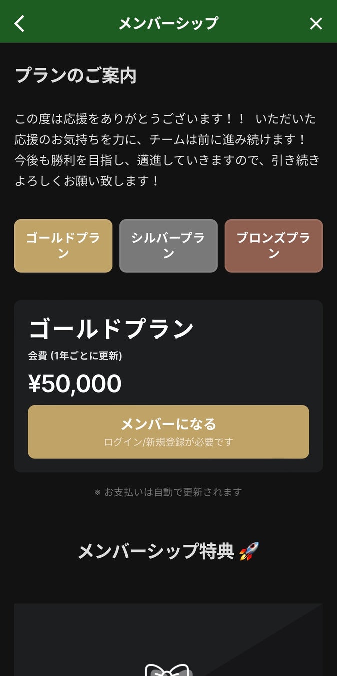 メンバーシップ機能からファンクラブ会員になって頂くと、チームから特別なグッズをお届けします!