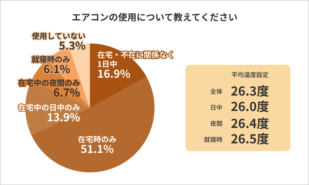 エアコンの平均設定温度は全体で26.3度で、推奨されている28度よりも低い結果になりました。