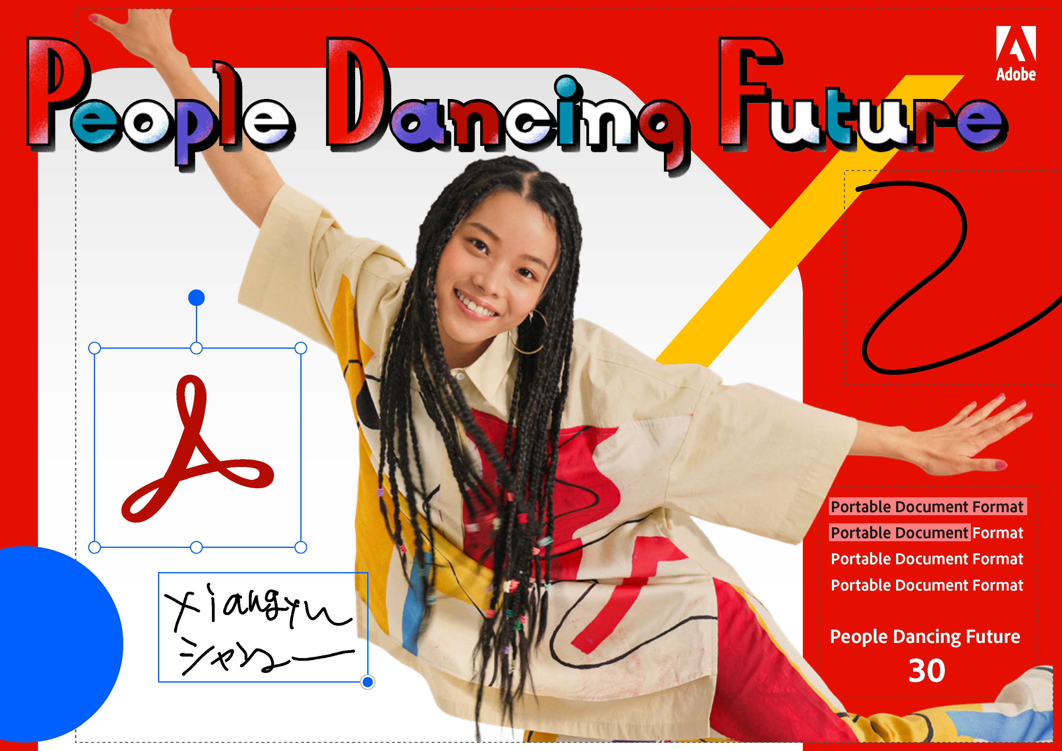 アドビ株式会社(本社:東京都品川区、代表取締役社長:クレア ダーレイ、以下アドビ)は、アドビが開発したPDF(Portable Document Format)、Adobe Acrobatが今年で正式発表から30周年となることを記念し、同世代のアーティスト・xiangyu(以下、シャンユー)から贈られたコラボレーション楽曲のミュージックビデオ『People Dancing Future』(URL:https://www.youtube.com/watch?v=rcp9sZs9ZCM)を公開しました。