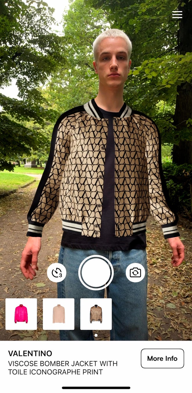ヴァレンタイの他、アプリでは2023年メンズウェアフォールコレクション ‘ヴァレンティノ アーバンフロー‘の一部のアイテムもバーチャル試着が可能です。