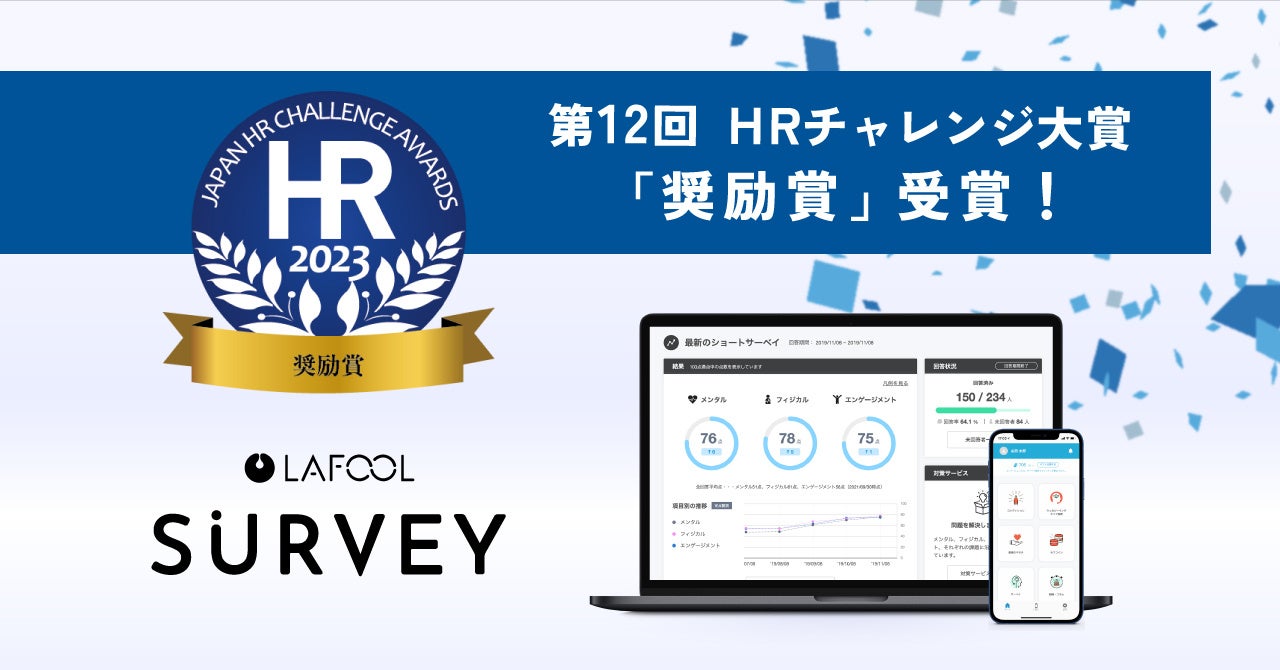 技術力、革新性、経営貢献、生産性向上、戦略性、社会的影響性という6つの観点から総合的に審査された結果、企業の人的資本経営の実現、経営者や人事を支援する課題解決ツールとして、ラフールサーベイは厚生労働省後援「第12回 日本HRチャレンジ大賞」において「奨励賞」を受賞しました。