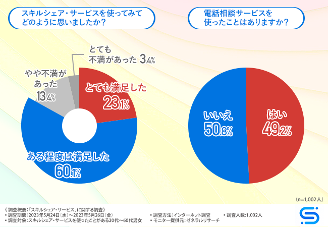 - スキルシェア・サービスを利用した感想と電話相談サービスを使ったことのある割合