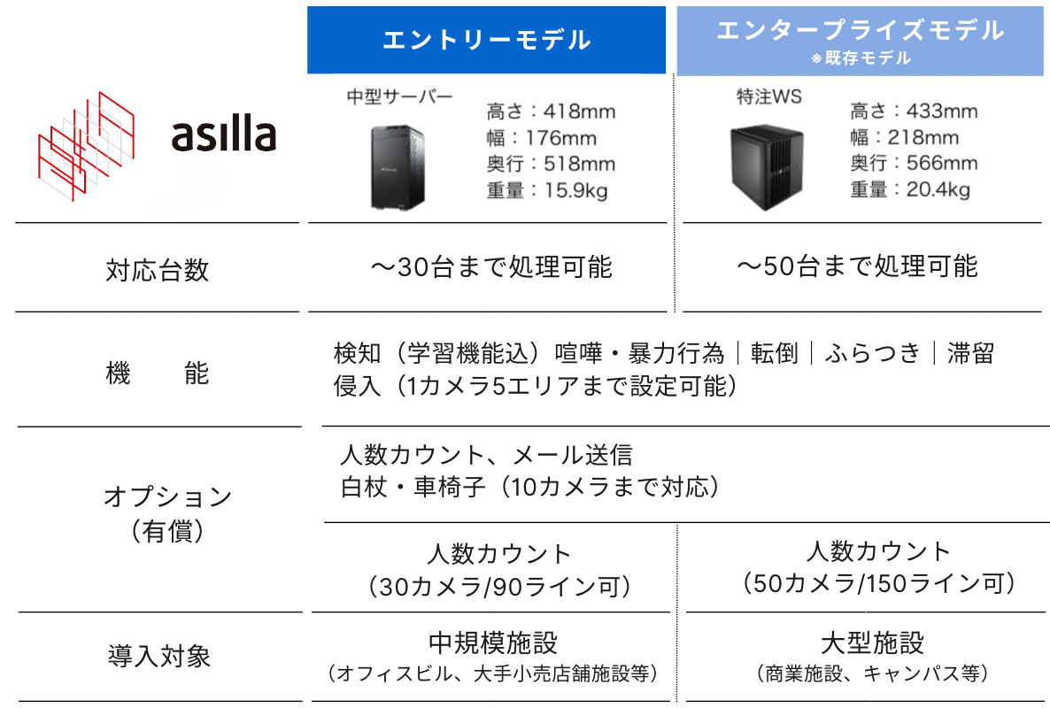 ■AI警備システム「アジラ」商品ラインナップ(比較表)