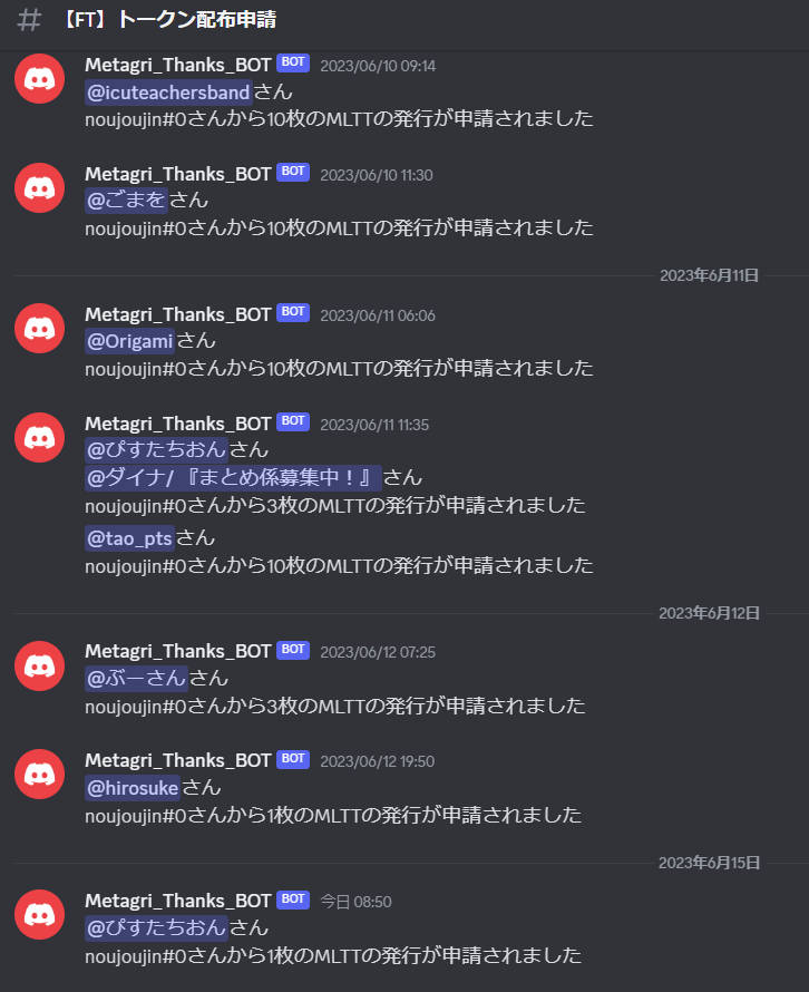 コミュニティDiscordで特定の⼈をメンションすると、対象者にソーシャルトークンを発⾏