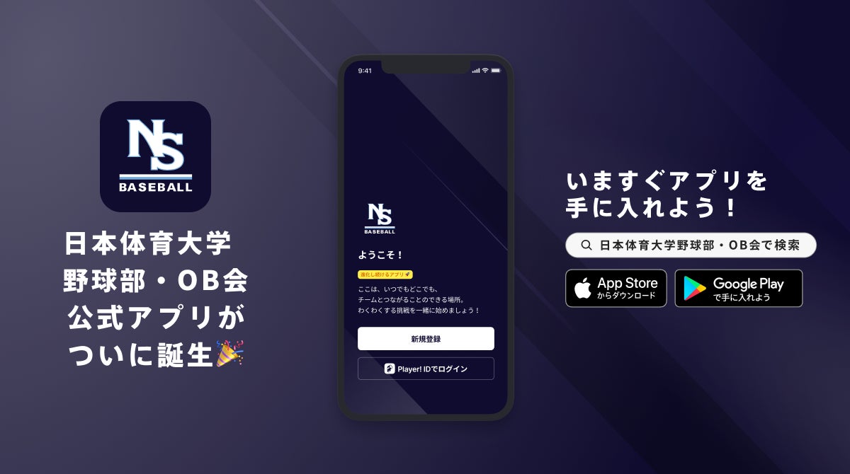 AppStoreもしくはGooglePlayで「日本体育大学野球部・OB会」と検索!