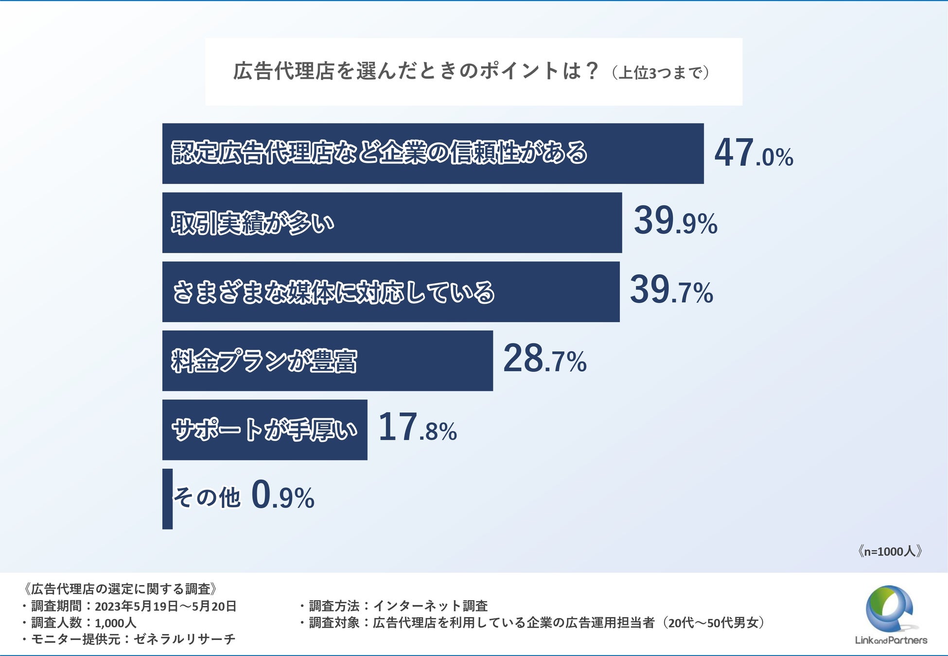 今回は、広告代理店を利用している企業の広告運用担当者の方1,000名を対象に、「広告代理店の選定」に関する調査を実施いたしました。