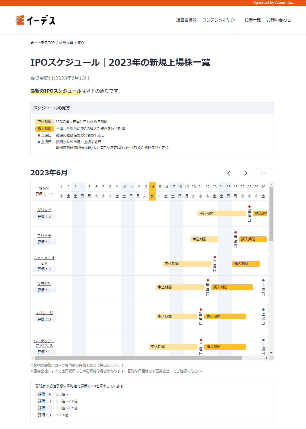 【IPOのスケジュールページ】