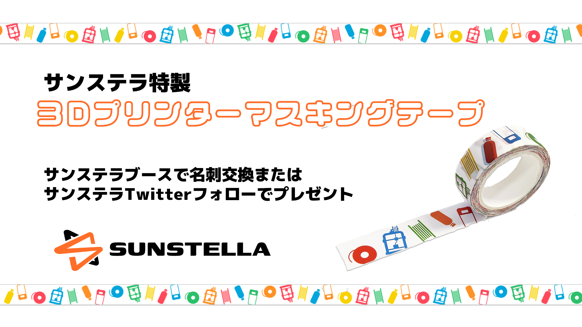 世界初披露の超高速3Dプリンターや、業務用3Dプリンタ・新素材が勢ぞろいします!名刺交換でメジャー及びオリジナルマスキングテープをプレゼントいたします!