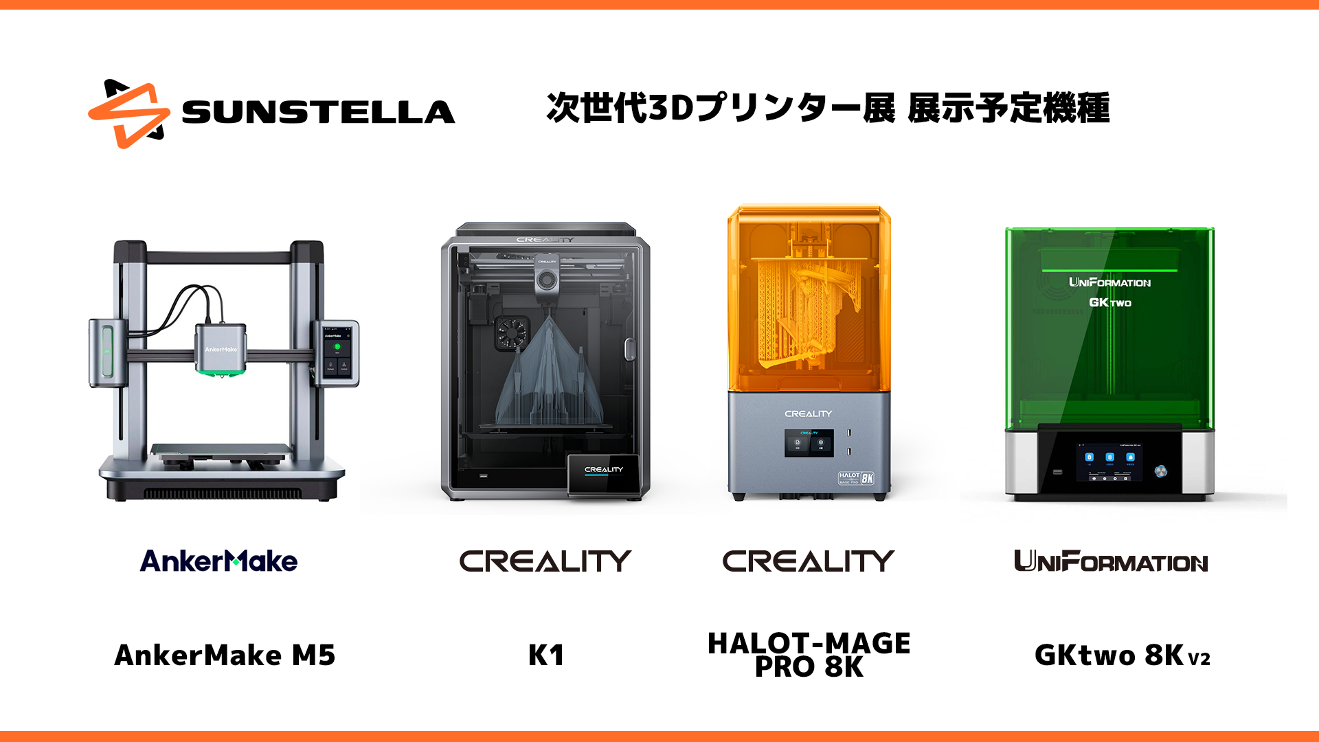 株式会社サンステラはPolymaker・UniFormation・RAYSHAPEブランドの日本総代理店、Creality社・Elegoo社・Tiretime社・SHINING 3D社の日本正規代理店として、世界中の優れた3Dプリント機器・各種造形材料の輸入販売・技術サポートを行っています。