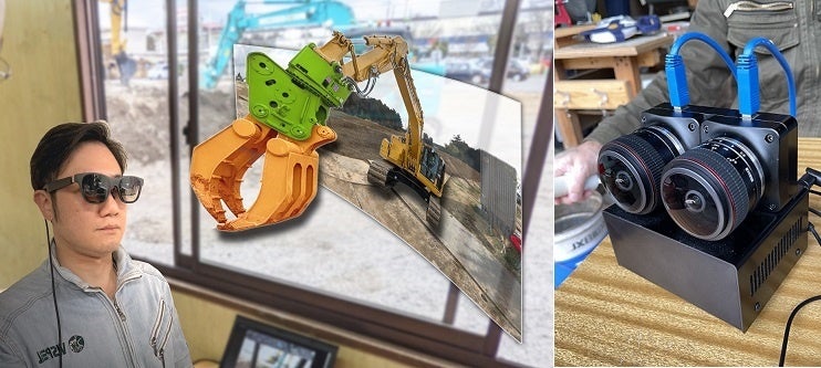 画像:ReHawk3Dの立体視視聴のイメージ図とステレオカメラ