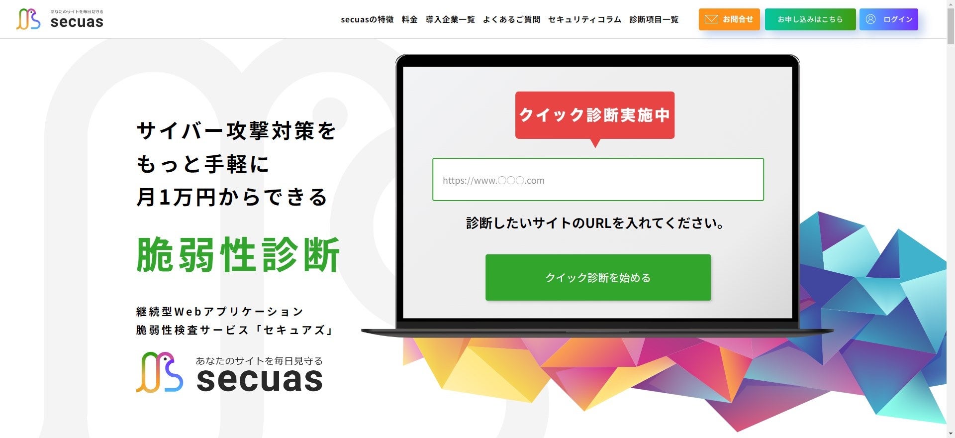 クイック診断サービスを試す>> https://secuas-cloud.com/