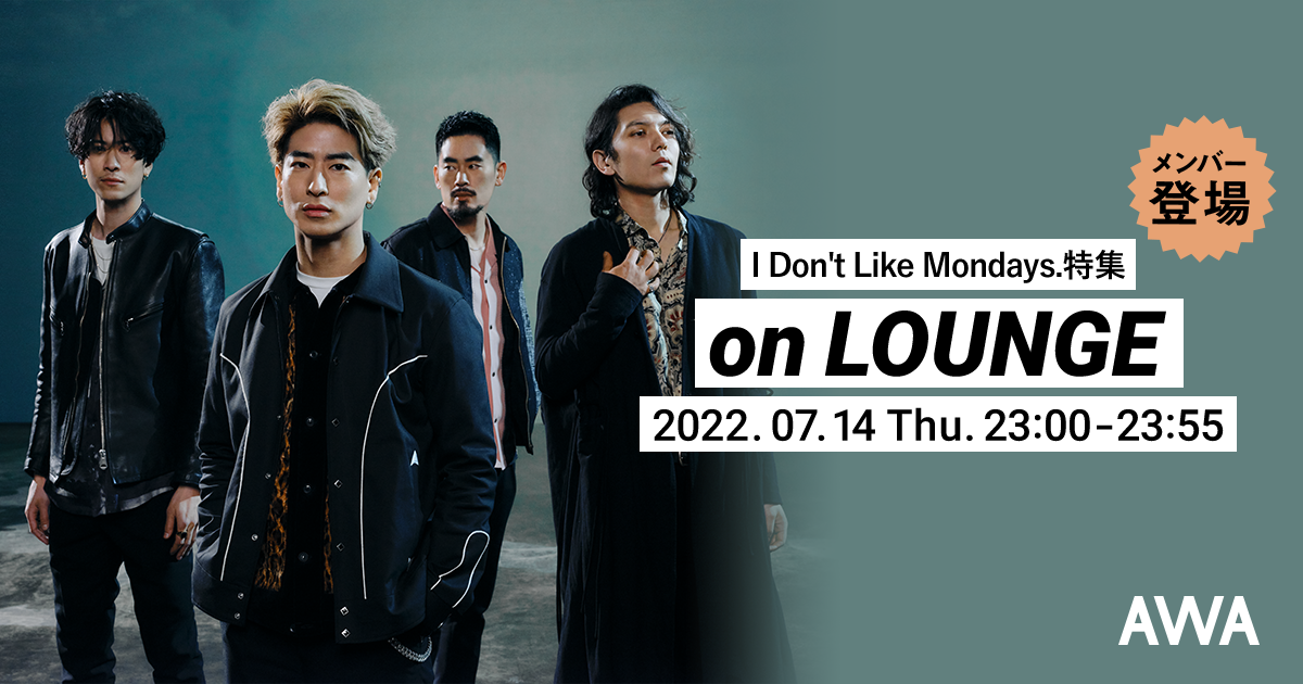 今回のイベントは、飯豊まりえ主演の読売テレビ・日本テレビ系プラチナイト 木曜ドラマ『オクトー 〜感情捜査官 心野朱梨〜』の主題歌に起用された新曲「重ね色」のリリースを記念して開催されるもので、最新曲はもちろん、アイドラの人気曲、代表曲を一挙オンエアいたします。本イベントにはメンバーが音声とチャットで参加し、後半にはユーザーからのリクエストも受け付けますLOUNGEは、どなたでも参加することができ、AWAアプリを事前にダウンロードしていれば、リクエストやアーティストとの交流など、よりお楽しみいただけます。ぜひ、I Don’t Like Mondays.のメンバー登場LOUNGEをお楽しみください。