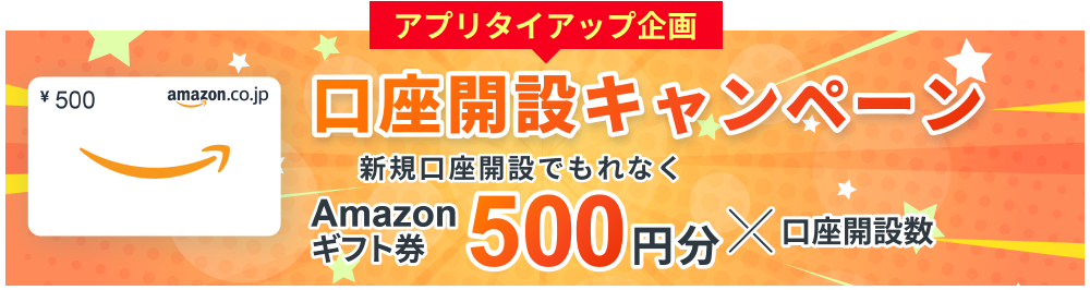 期間限定のタイアップキャンペーンとなっていますので、この機会にアプリをダウンロードして対象証券会社の口座開設を行い、Amazonギフト券をお受け取り下さい。