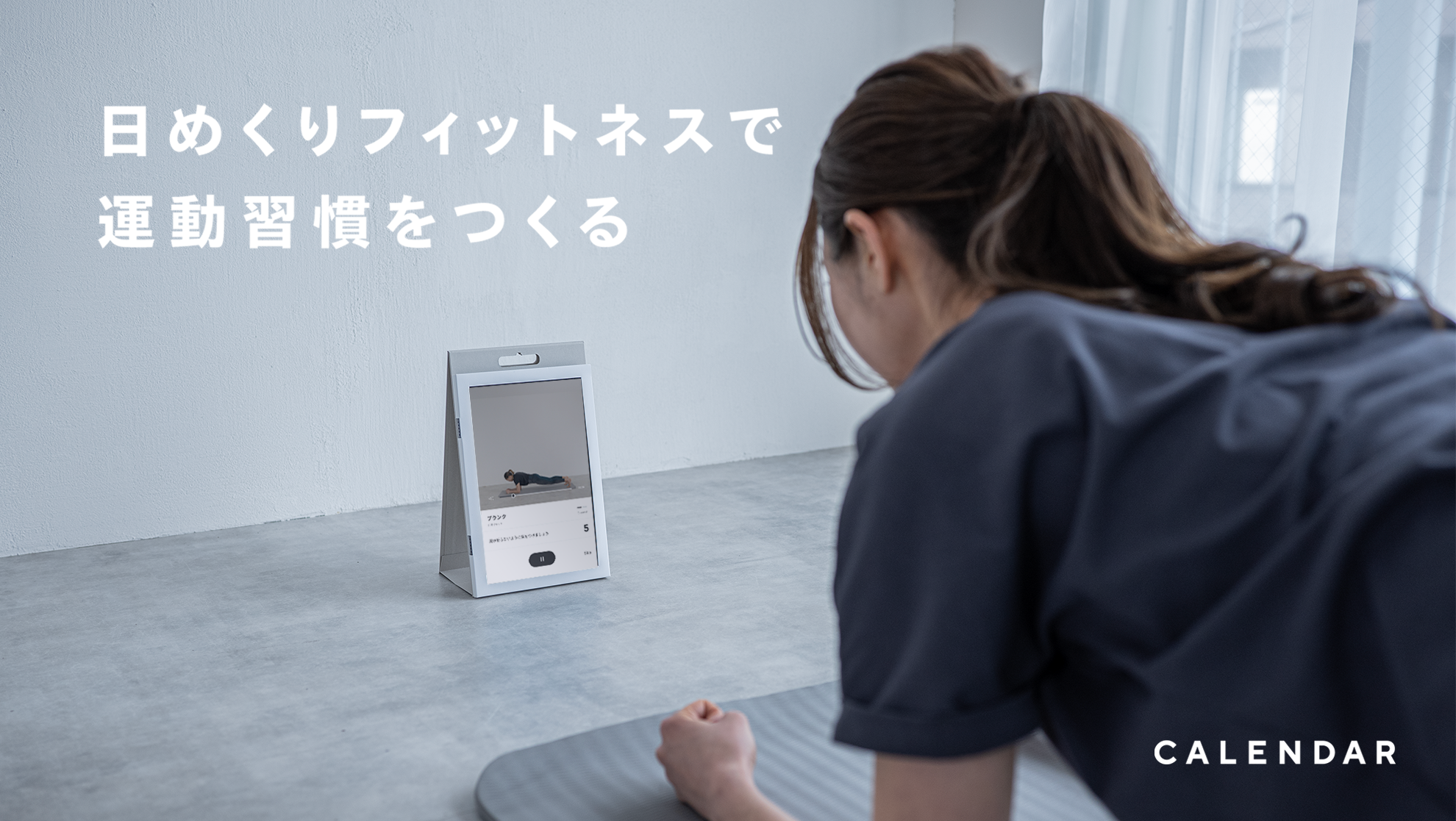 CALENDARは、ワンタッチ&1日3分だから運動が続く「日めくりオンラインフィットネス」です。専用のスマート日めくりカレンダー(Android端末)とアプリが、習慣化を後押しします。