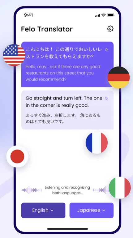 そこで、言葉の壁を打ち破って、新たな体験を提供できる「Felo瞬訳」が登場します。このアプリをスマートフォンにインストールするだけで、まるで高度な同時通訳者を持っているかのような体験が可能です。日本語、英語、中国語、スペイン語、ドイツ語、フランス語、イタリア語、ロシア語、韓国語など、9つの言語を自由に相互変換できます。
