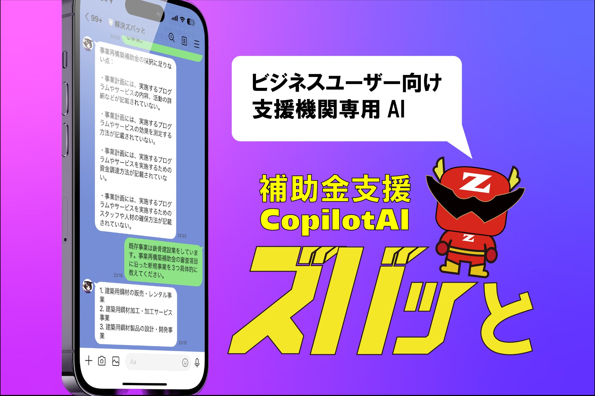 補助金支援AIアシスタント「ズバッと(β)」 について