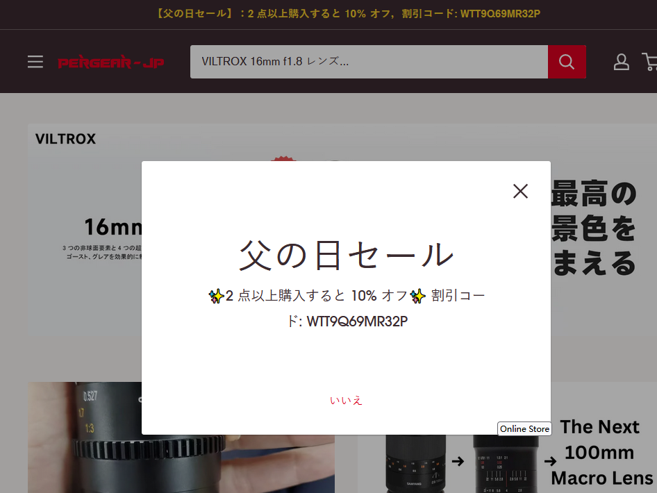 2023年6月18日(日)まで、撮影が楽しくなる機材が揃うPERGEAR公式サイト(https://pergear.co.jp/)にて、父の日時別限定セールを開催いたします。商品を2点以上購入すると、10%OFFが可能です。