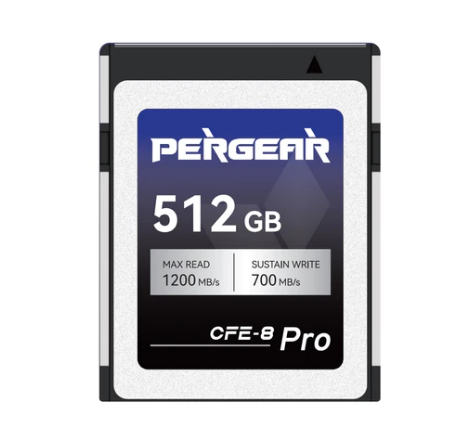 PERGEAR CFE-B PRO 512GB Cfexpress タイプ B メモリ カードは、連続モードの写真とビデオ (4K120P、8K30P) の容量と速度の組み合わせで、700MB/秒の安定した持続書き込み速度を提供します。