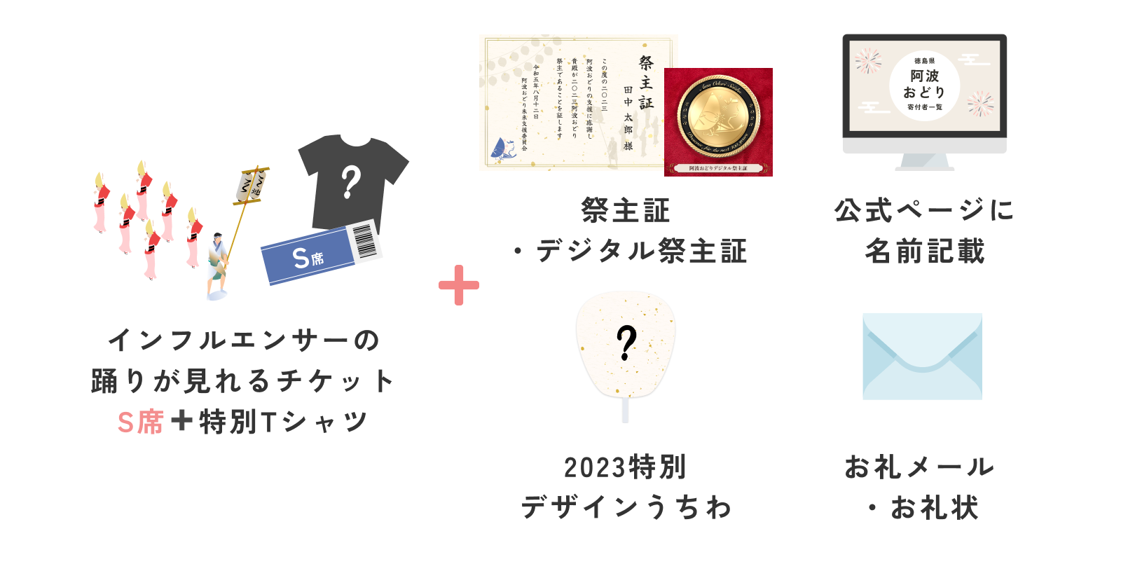 阿波おどりを支援するとともに、当日の座席チケットを購入することができるプランです。