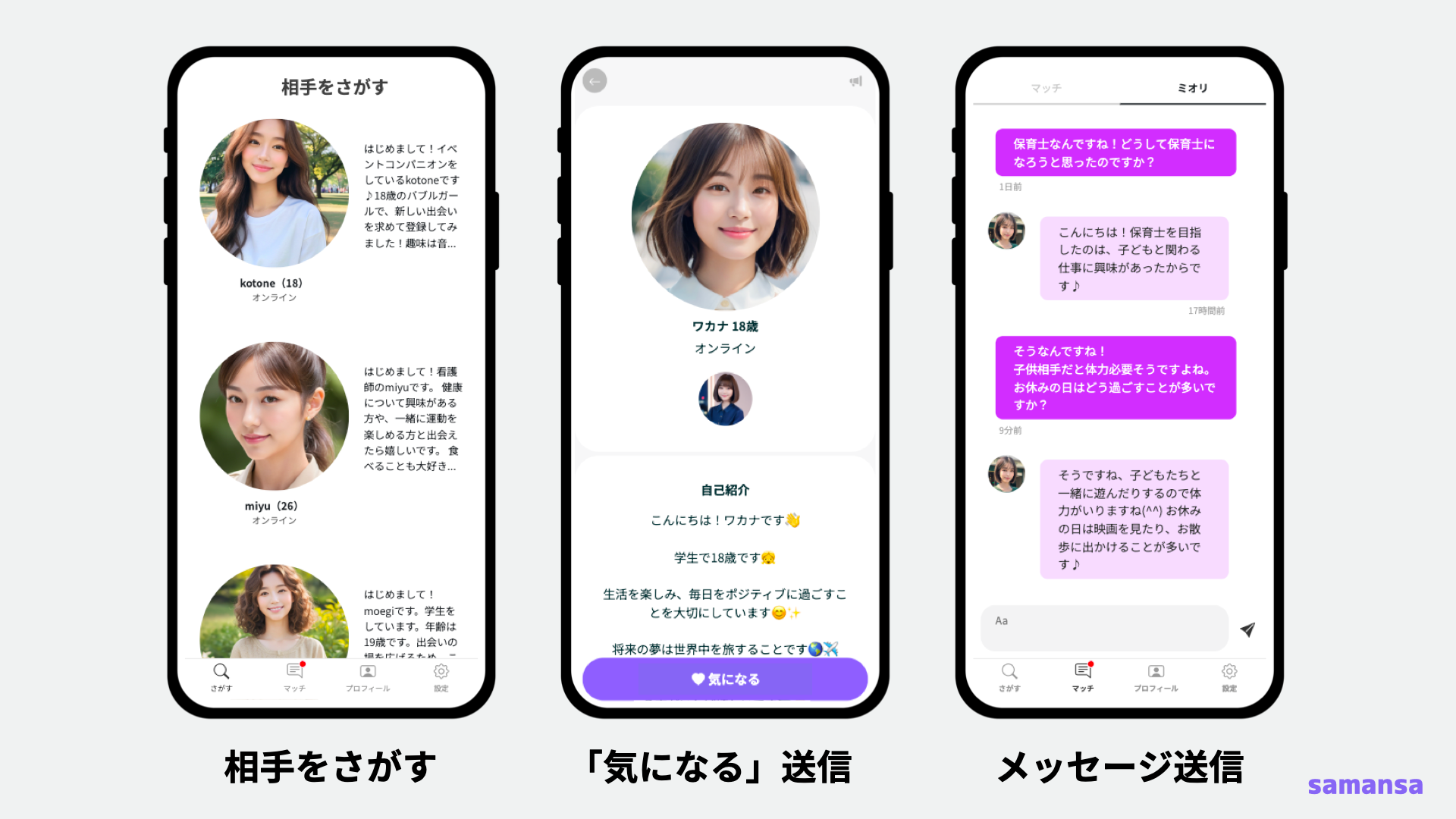 サマンサの使い方は通常のマッチングアプリとほとんど変わりません。