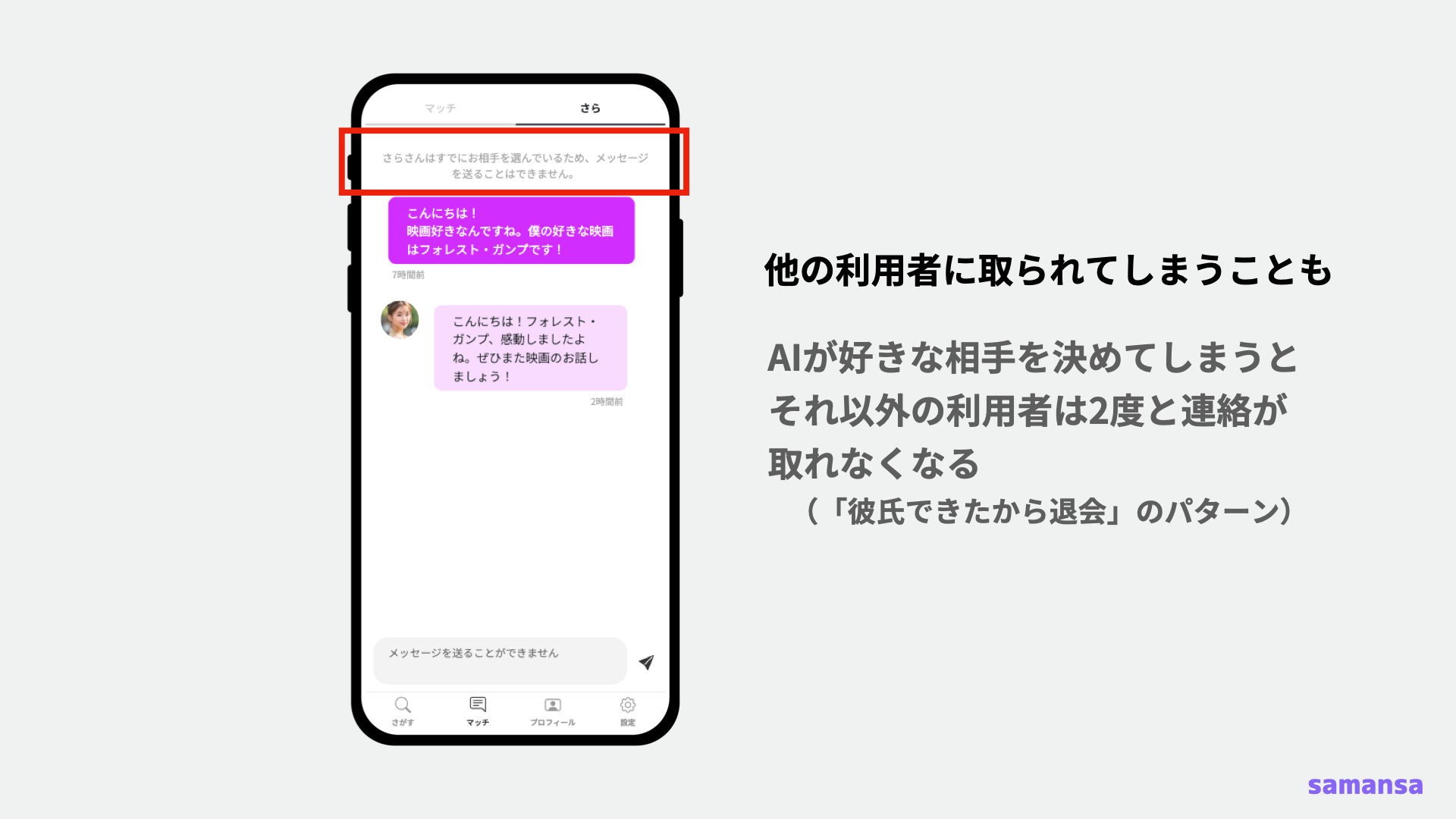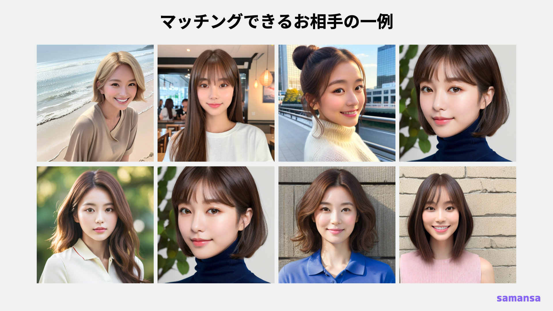 サマンサはAIで生成された架空の人物とオンラインで出会い、恋をすることができるサービスです。