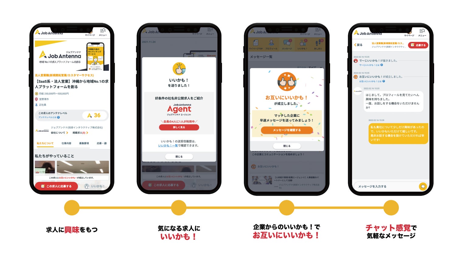 ジョブアンテナは、豊富な求人数と使いやすい検索機能を併せ持つ「地域特化型の求人マッチングサービス」として2016年より沖縄でサービスを開始しました。単に企業側から求人情報を発信するのではなく、企業と求職者がお互いに「いいかも!」というサインを送り合う機能が特徴的で、双方向かつ最適な採用・求職活動を実現しています。